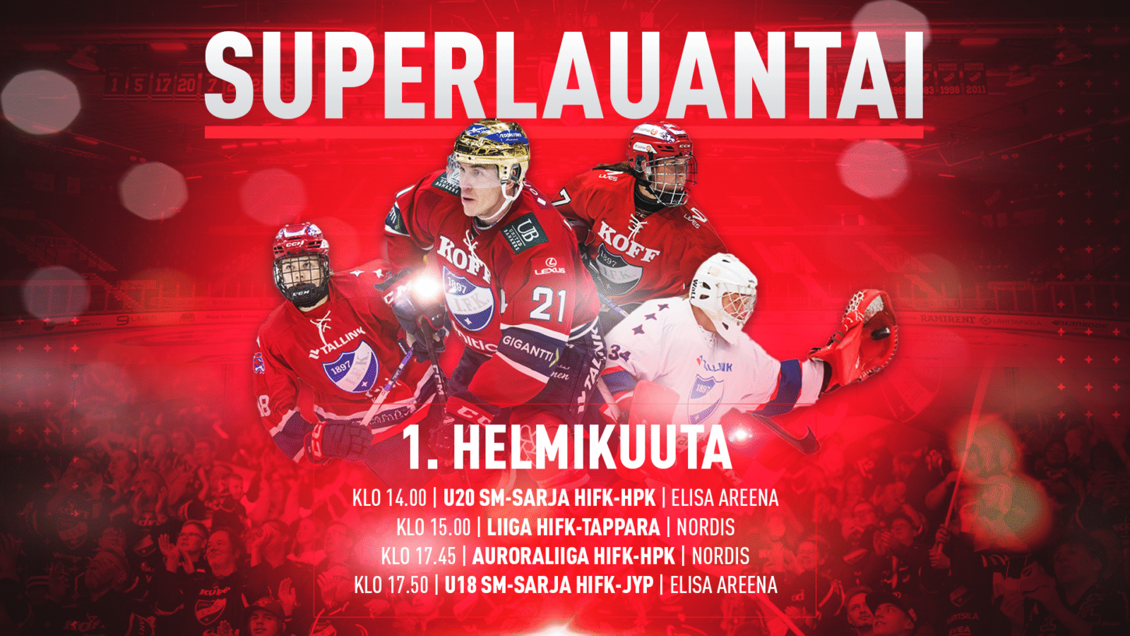 Helmikuun ensimmäinen päivä Nordiksella on HIFK-mielisten superlauantai! Päivän aikana kiekkokansaa hemmotellaan neljän lätkämatsin tarjonnalla saman katon alla. Sarjapisteistä taistellaan U18-, U20- sekä miesten ja naisten pääsarjojen puolella.U20 SM-sarja | klo 14.00 HIFK-HPK @Elisa Areena