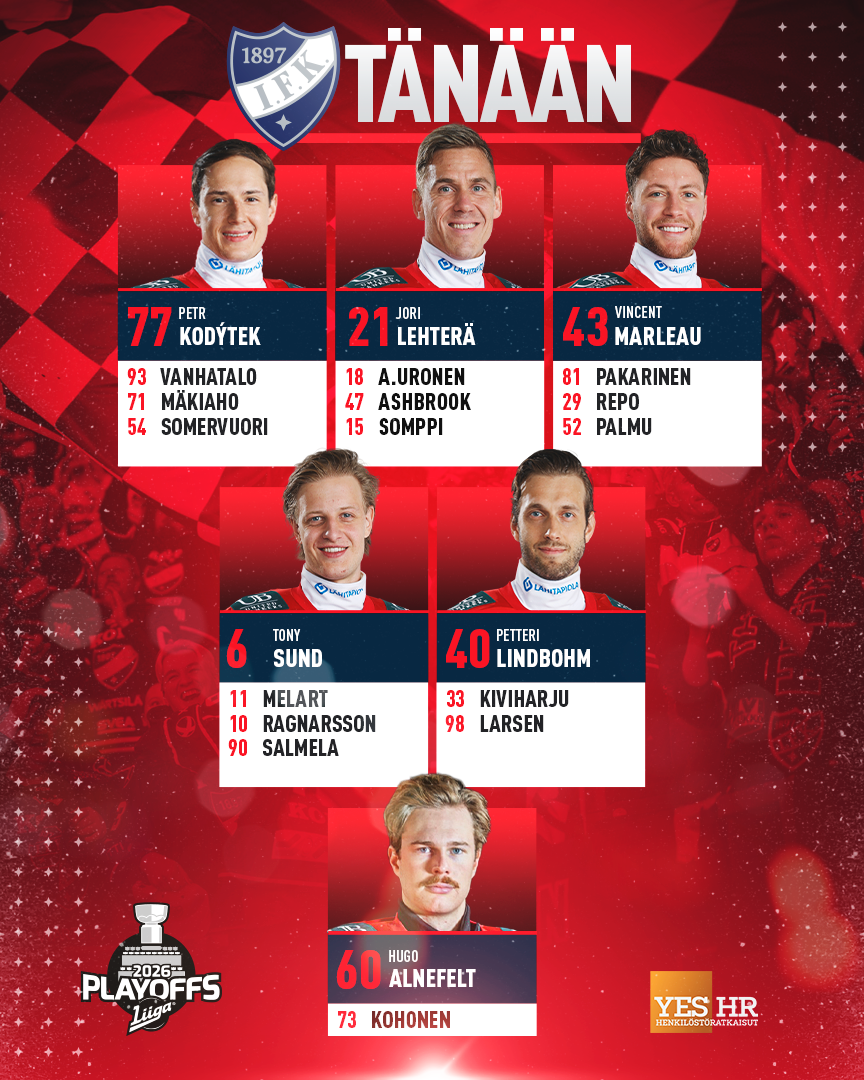 Myös puolustaja Petteri Lindbohm palaa kokoonpanoon huilattuaan yhden ottelun.