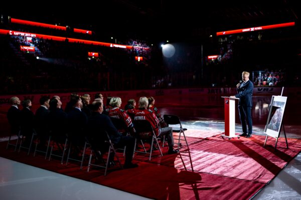 Seura ja joukkue muistivat Lennua seremoniassa uniikilla maalauksella. HIFK:n numero 22, Mika Kortelainen luovutti tilaisuudessa Lennart Petrellille HIFK:n kultasormuksen.