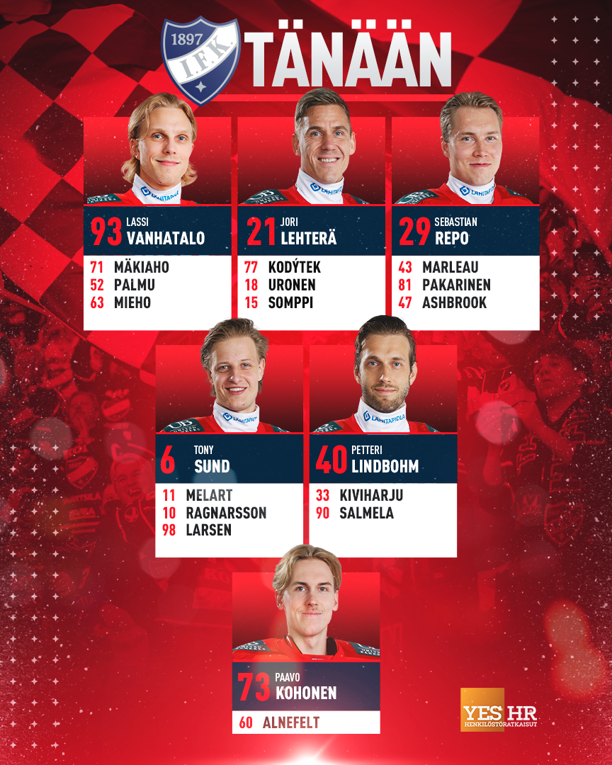 93 Lassi Vanhatalo – 21 Jori Lehterä "A" – 29 Sebastian Repo