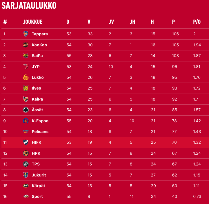 HIFK kohtaa tänään kotonaan sarjan kärkijoukkueisiin lukeutuvan SaiPan. Stadilaiset hakevat kaulaa sarjataulukossa takana oleviin ja teoreettiset mahdollisuudet pudotuspelien kotietuunkin on vielä olemassa.