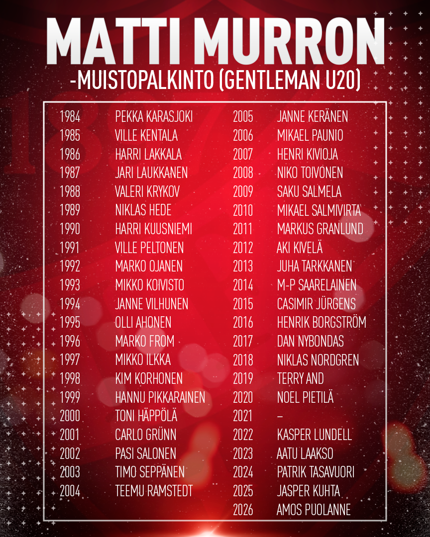 Gentleman-palkinto (U20): Amos Puolanne