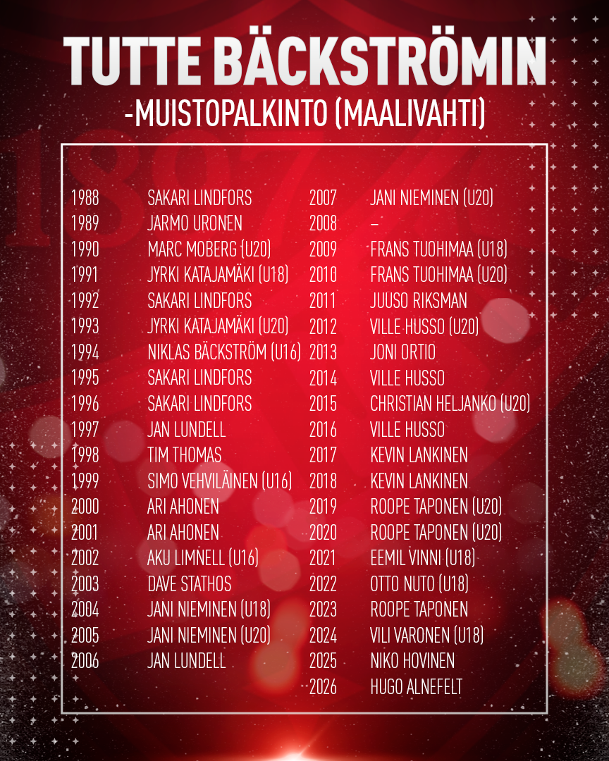 Tutte Bäckströmin maalivahtipalkinto: Hugo Alnefelt