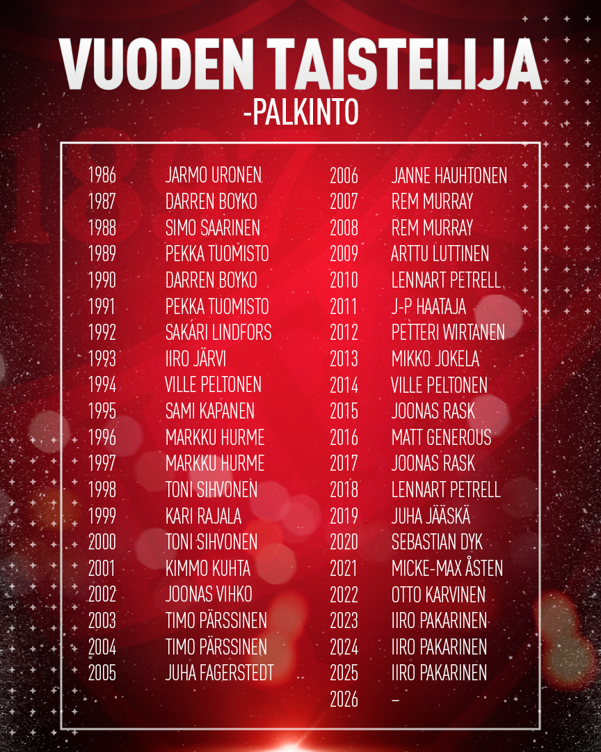 Heikki Riihirannan taistelijapalkintoa ei jaettu kauden 2025-2026 päätteeksi.