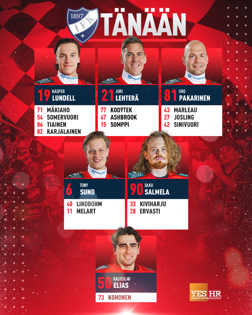 19 Kasper Lundell – 21 Jori Lehterä "A" – 81 Iiro Pakarinen "C"